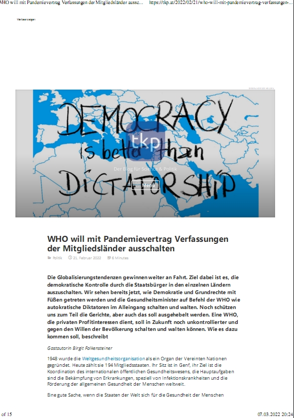 Multipolar Magazin, Titel: Internationaler Pandemievertrag: Ein globaler Automatismus wird installiert, verlinkt am 13.06.2021