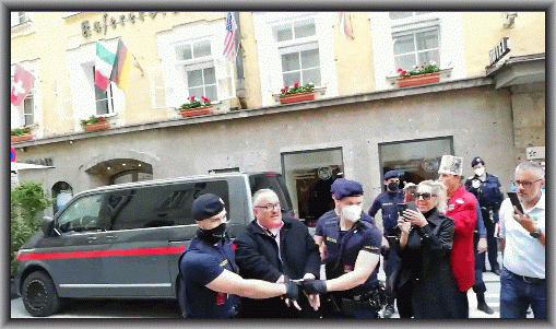 Stand-up-Demo anlässlich des Besuchs von Kurz in Salzburg der oe24-Reporter Mike Vogl verhaftet und in Handschellen abgeführt. Die Ausrede der zuständigen